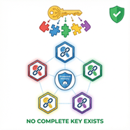 An attacker would need to simultaneously breach multiple blockchain nodes and know the specific algorithm to reconstruct the key—making a successful attack virtually impossible.
